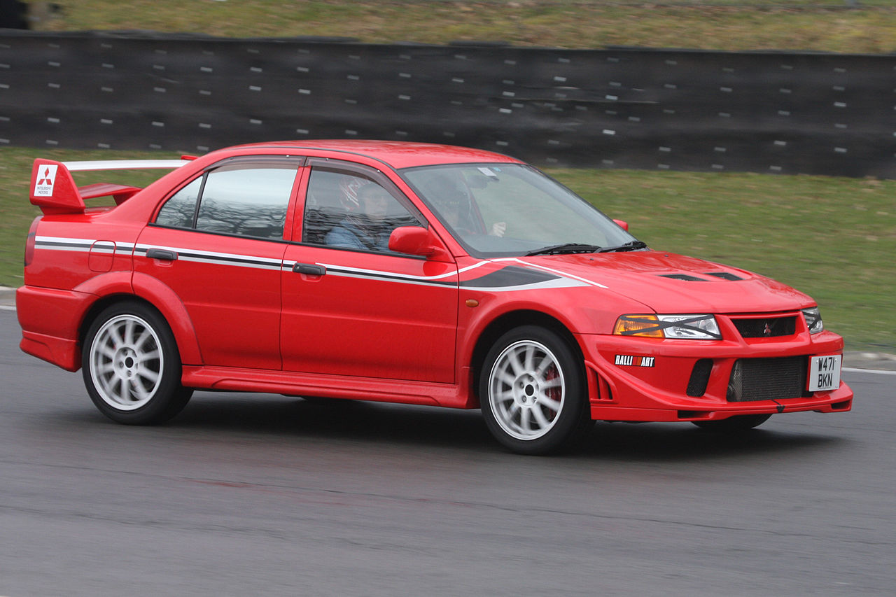 The Evolution VI’s changes mainly focused on cooling and engine durability. It received a larger intercooler, larger oil cooler, and new pistons, along with a titanium-aluminide turbine wheel for the RS model, which was a first in a production car. Output was rated at 280 PS (276 hp; 206 kW) at 6,500 rpm and maximum torque of 373 N⋅m (275 lb⋅ft) at 3,000 rpm.[12] The Evolution VI received new bodywork yet again, with the most easily noticeable change being within the front bumper where the huge fog lights were reduced in size and moved to the corners for better airflow. A new model was added to the GSR and RS lineup; known as the RS2, it was an RS with a few of the GSR’s options. Another limited-edition RS was known as the RS Sprint, an RS tuned by Ralliart in the UK to be lighter and more powerful with 330 hp (246 kW).